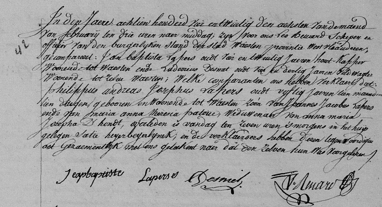 Afbeelding: overlijdens akte Philippe Andreas josephe Lapers